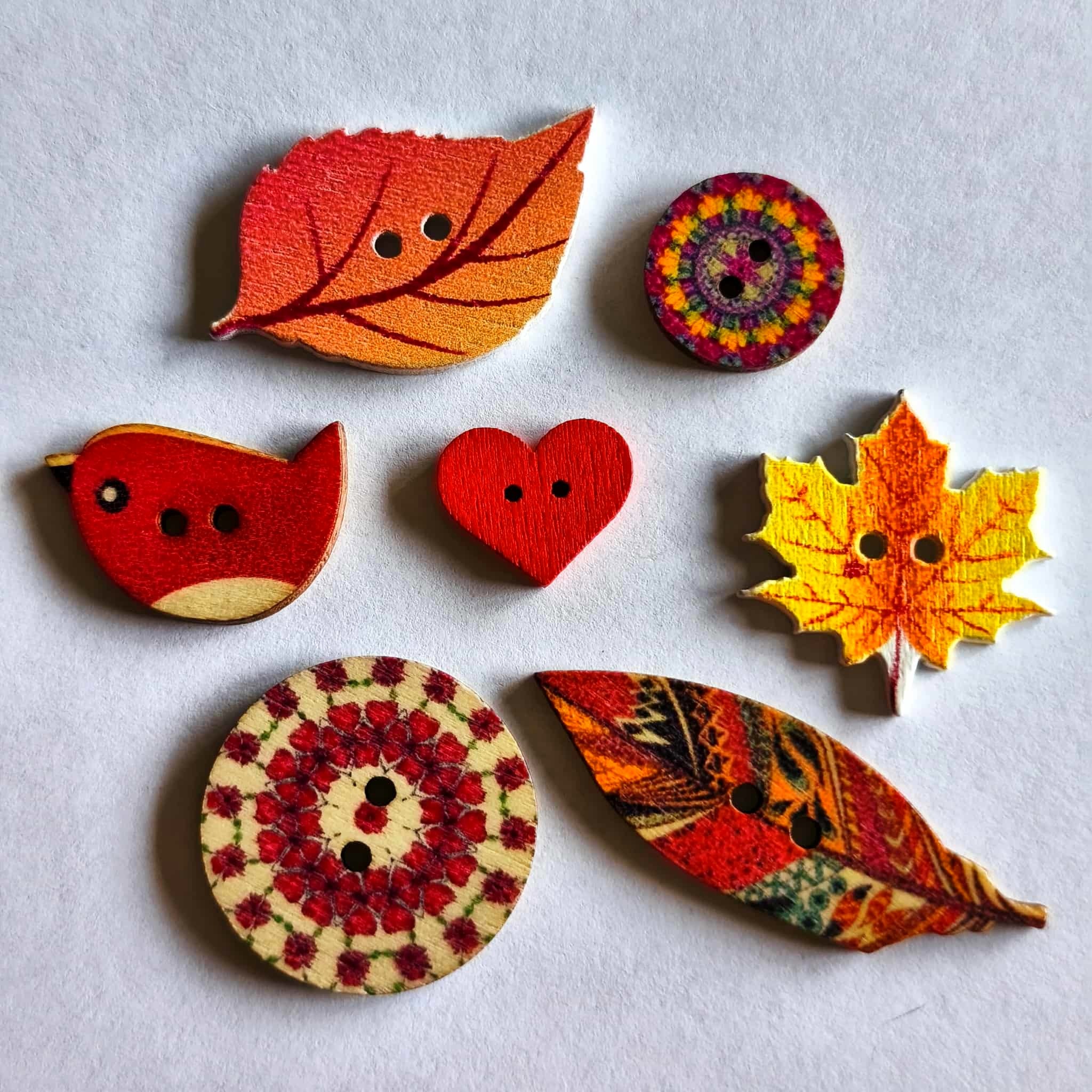 Les petits boutons d'automne sont en bois, et mesurent entre 1.8 et 2.8 cm.