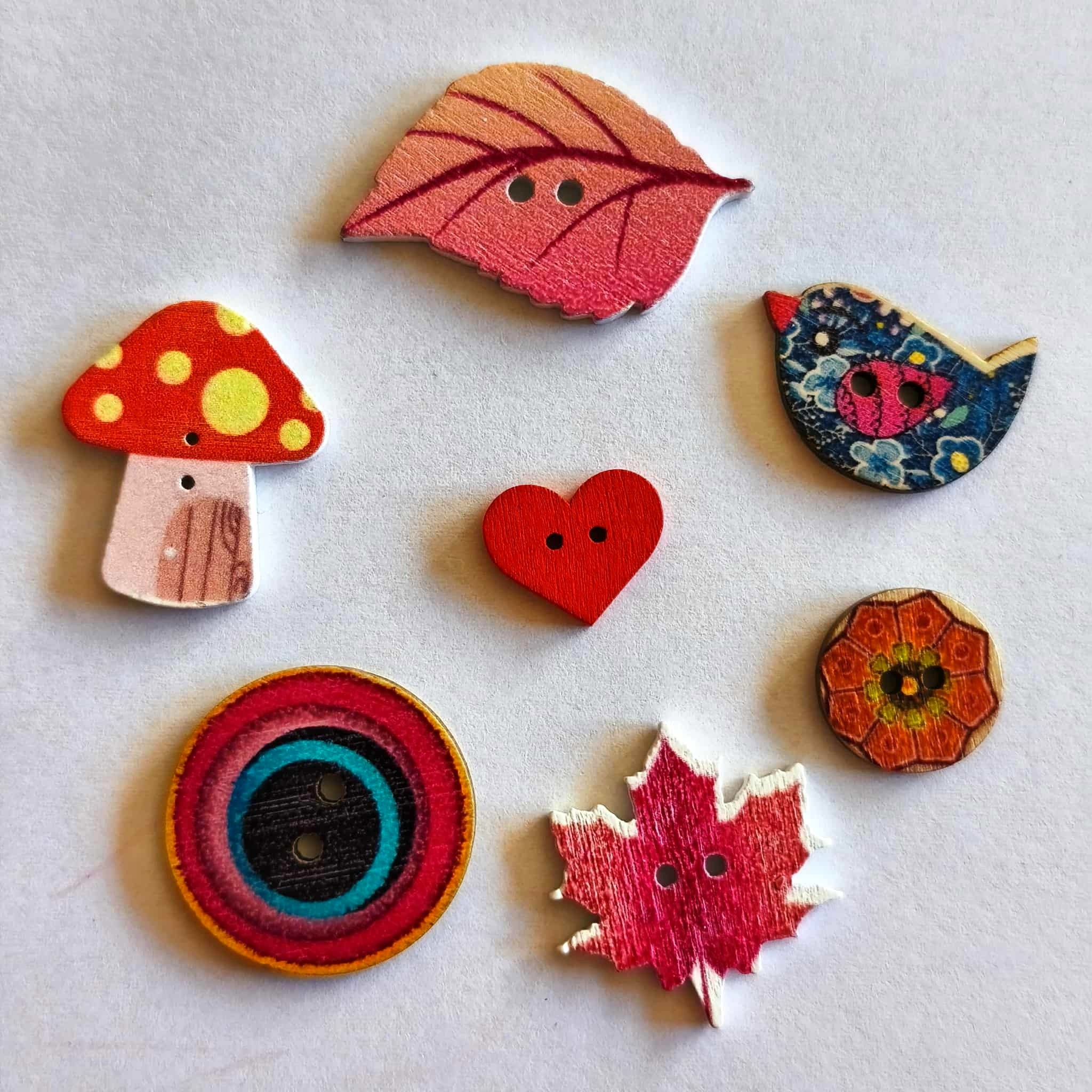 Les petits boutons d'automne sont en bois, et mesurent entre 1.8 et 2.8 cm.