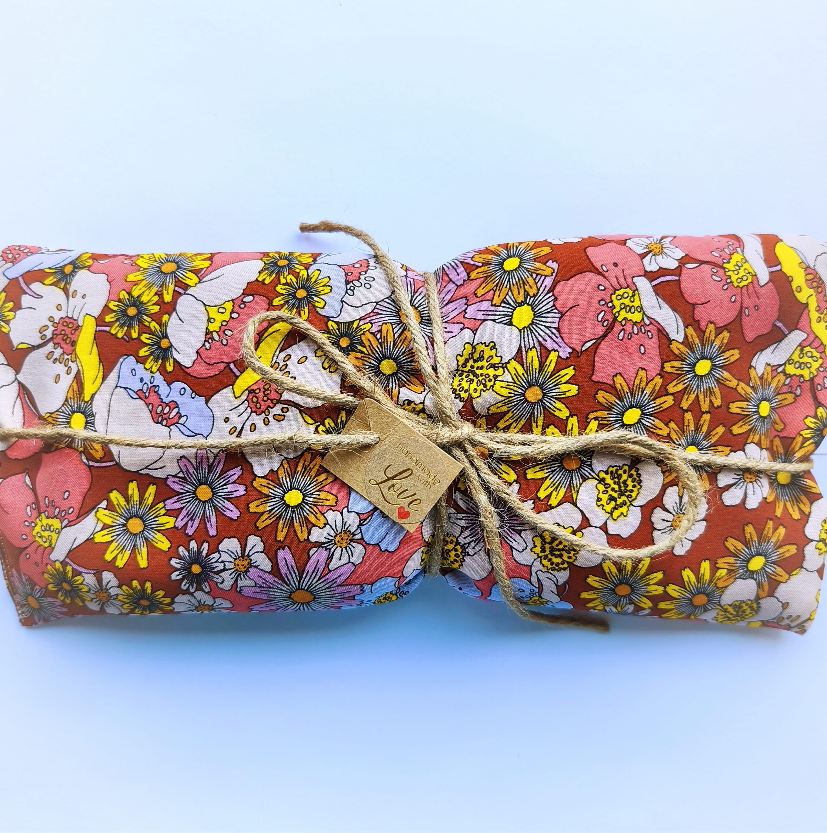 Bouillotte sèche rectangulaire, cousue par mes soins, en Normandie.