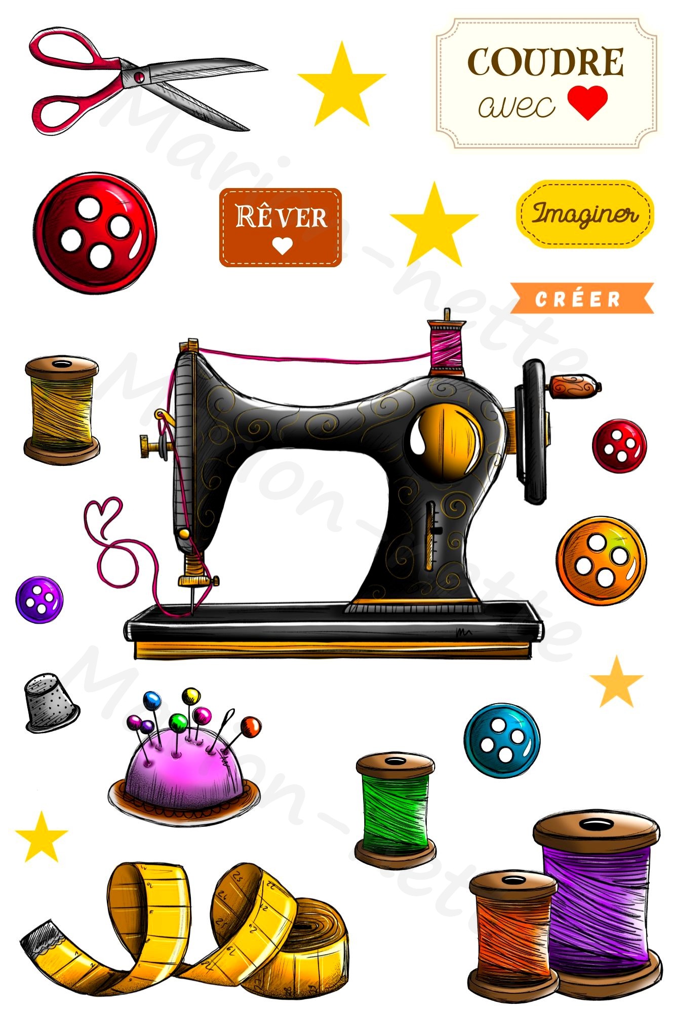 Illustrations & motifs 100% imaginés et créés par Marion Lepage, alias Marion-nette Illustrations (en Normandie)
