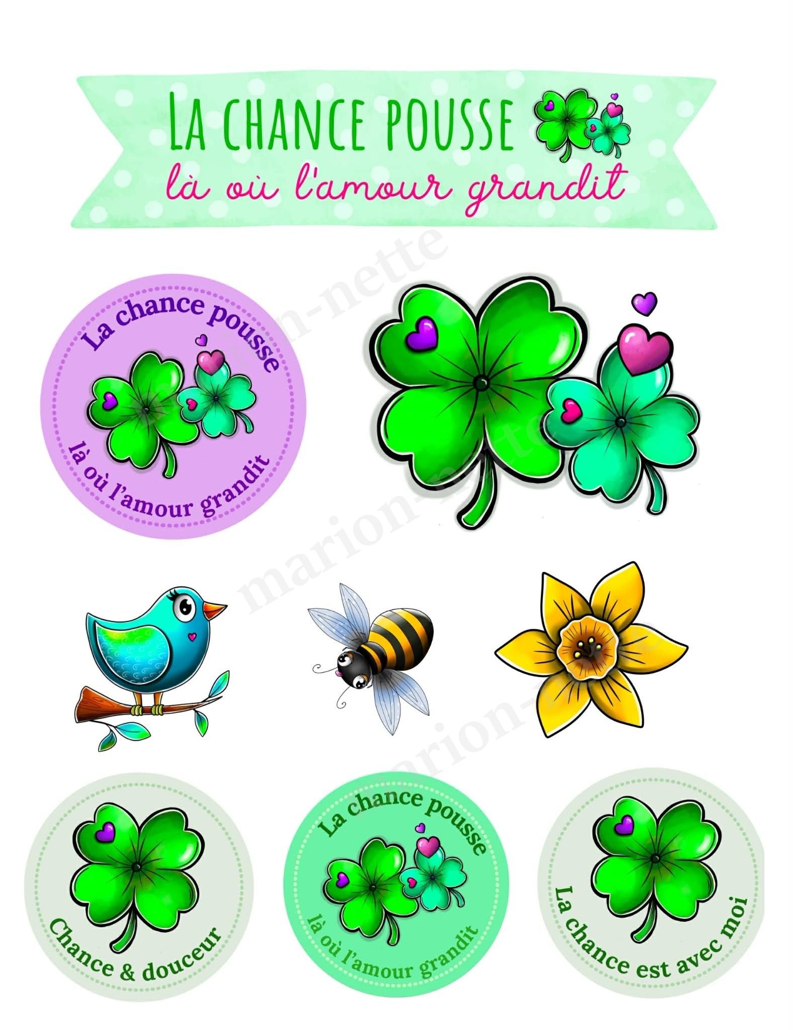 Illustrations & motifs 100% imaginés et créés par Marion Lepage, alias Marion-nette Illustrations (en Normandie)