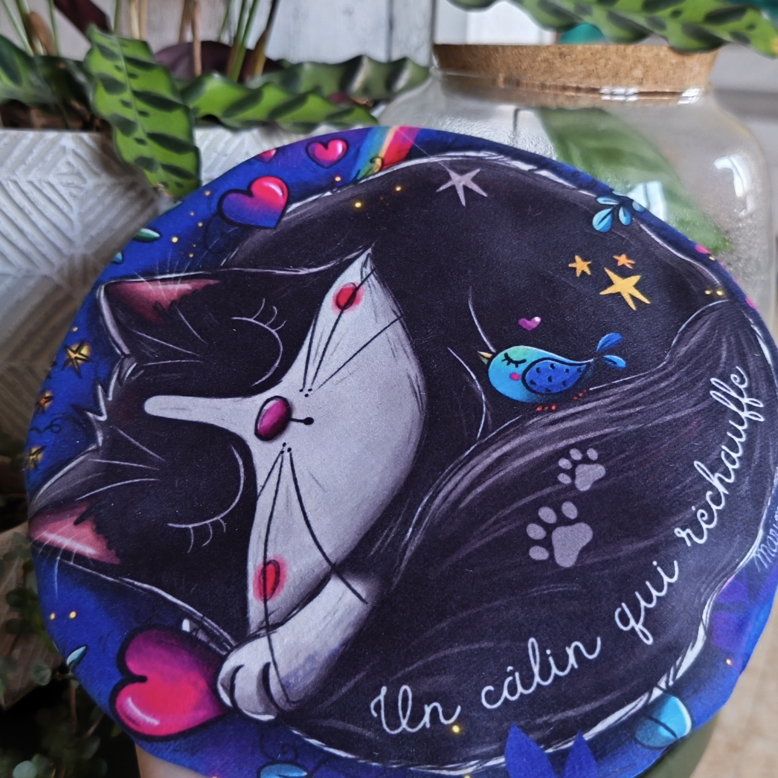 Imaginée et entièrement dessinée et cousue par mes soins, la bouillotte Un câlin qui réchauffe est conçue pour vous apporter une chaleur douce et réconfortante.